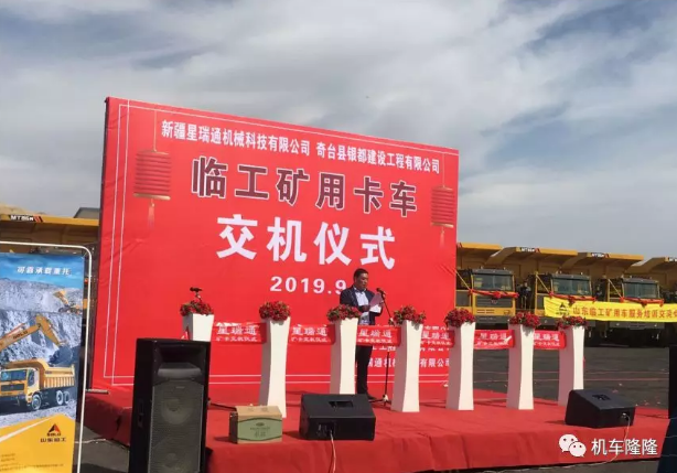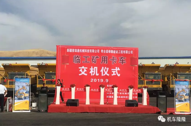 2019年9月9日上午12時,由星沃股份新疆星瑞通機械科技有限公司主辦的“新疆星瑞通機械科技有限公司與奇臺縣銀都建設(shè)工程有限公司15臺臨工礦卡交機儀式”在奇臺縣蔣軍廟戈壁二號露天煤礦隆重舉行!
